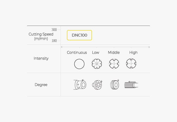 DNC100, the first recommended grade of high-speed succession, reduces your production time with high productivity.
