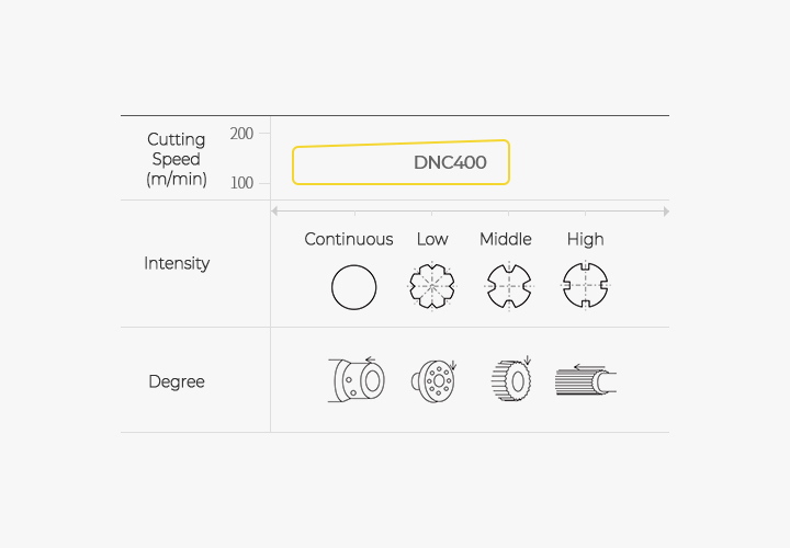 DNC400, a coating insert, has excellent machining performance in case of changes in the depth of cut compared to the previous one due to changes in the solid type shape.