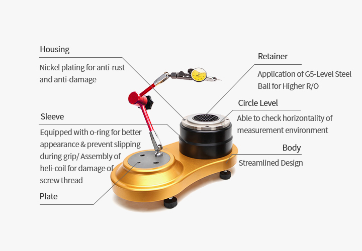Precise Run-out will helps you improving accuracy of workpiece measurement and tool life. DINE Run-out tester, ROT, can support maximum 3 microns of run-out at 300 mm points.