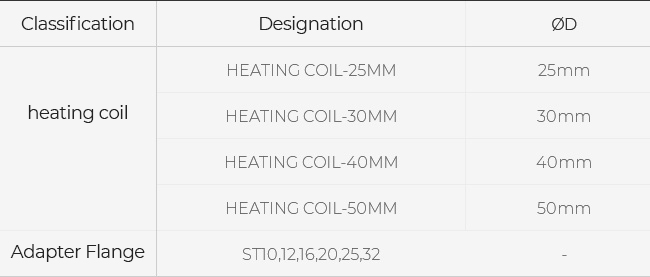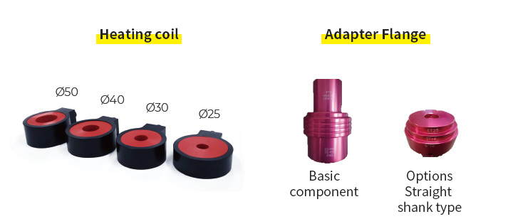 - Ø25, Ø30, Ø40, Ø50 Diameter heating coils can be replaced Able to prevents overheating and cool manually by setting the machine