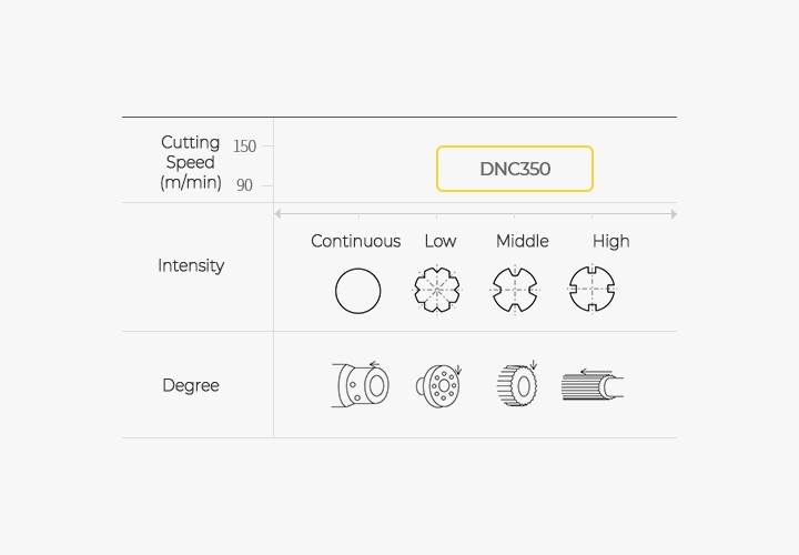 DNC350 is the first recommended production for interruption area, and it reduces your production time with improved quality.