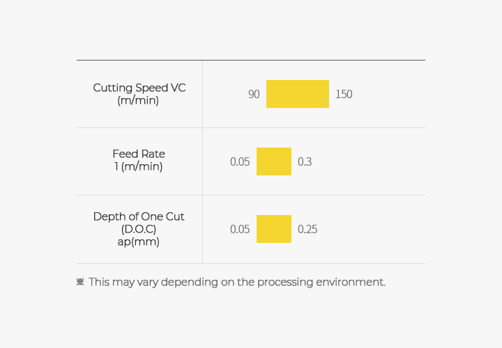 This product is recommended for heat treated steel processing and is optimized for medium and high interrupted cutting
