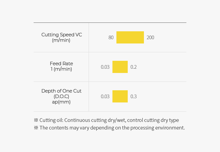 This product is recommended for heat-treated steel processing and is optimized for low and medium interruption cutting.
