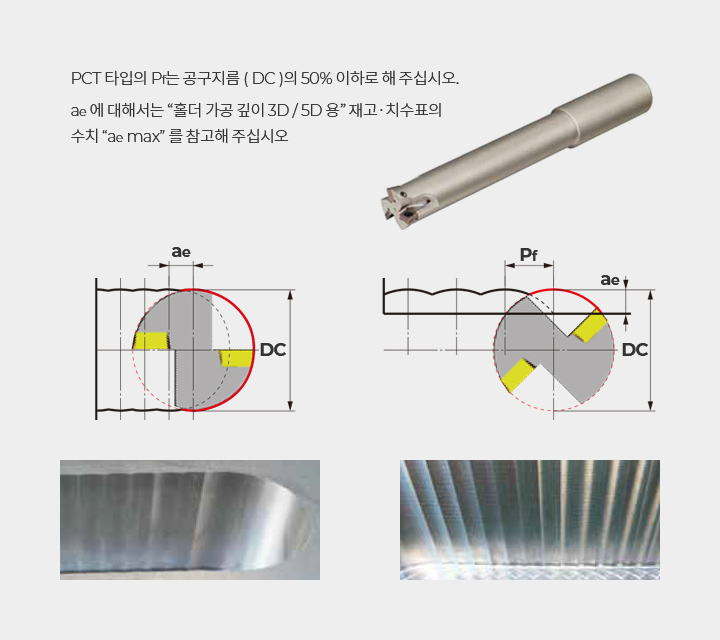 - PCT 타입은 반경 방향 절입은 제한되지만 유효 날 수가 많아