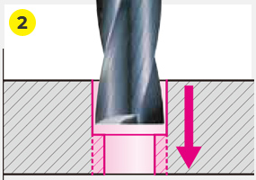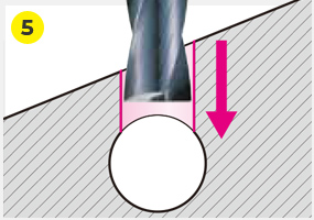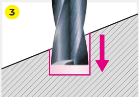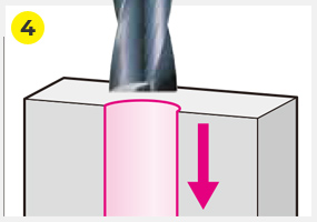 고능률 카운터 보어 가공, 경사면 및 원통면 등 비평면 홀 가공, 단속 홀 가공 등에 사용가능. 출구측 버 억제에도 효과를 발휘