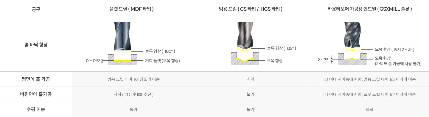 플랫 드릴 / 범용 드릴 / 엔드밀의 용도 구분