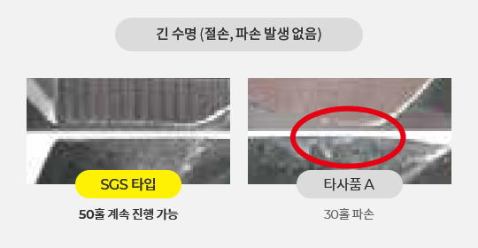 최적의 날형과 전용 재종을 조합하여 마모를 대폭 감소