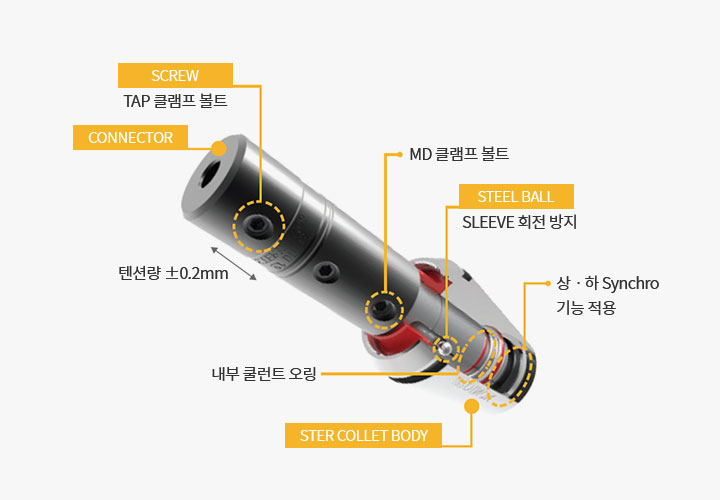 ER 콜렛척에 SETR을 체결하는 것만으로도 동기오차를 최소화 할 수 있으며