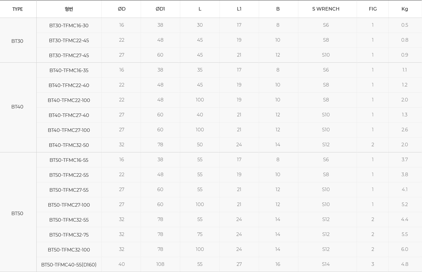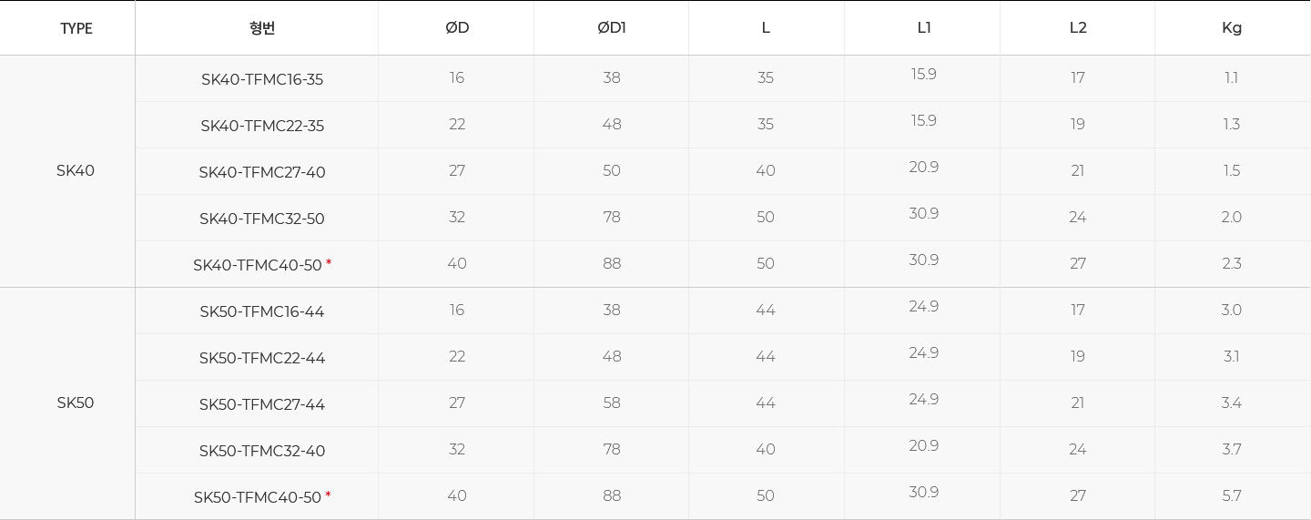 내경 25/32/40 규격 모델은 락킹스크류 2개 장착