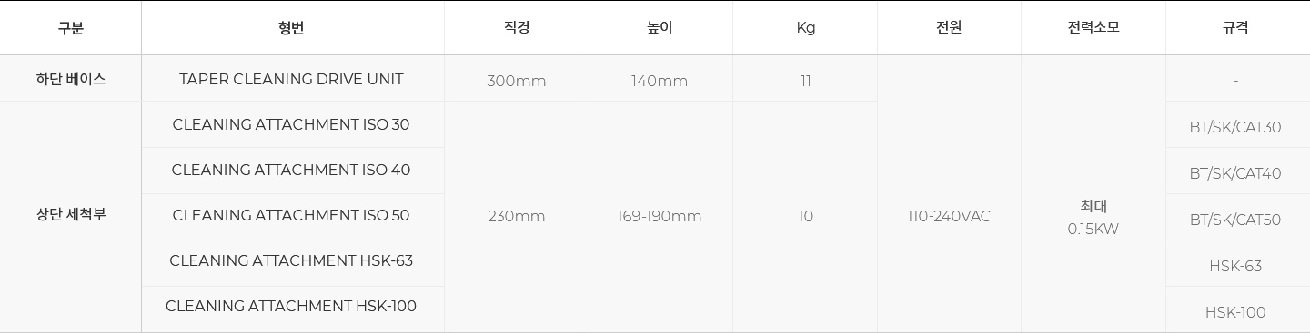 ALL 모든제품 Chuck/Arbor VISE Other Products TAPER CLEANING 테이퍼 클리너 List 카탈로그 특징 테이퍼 세척을 통한 정밀도 향상 절삭공구 인선의 수명향상으로 공구 비용 절감 장비 스핀들의 보호 접촉면의 정밀도를 오래도록 유지 컴팩트한 디자인과 타이머 기능 (mm) ACCESSORIES