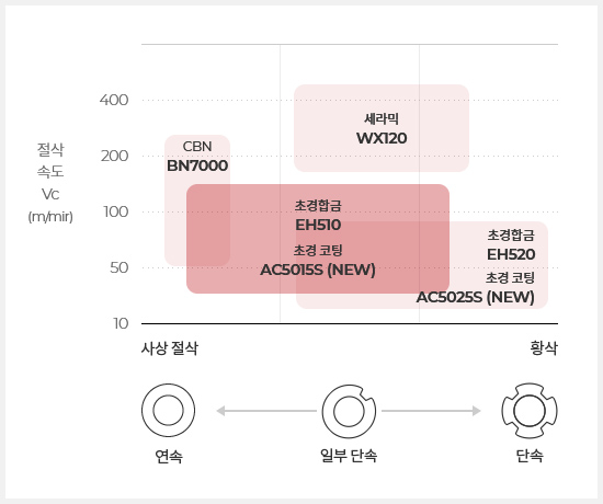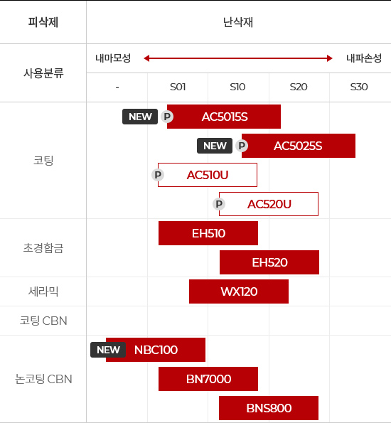 AC5015S 고속·고능률 가공에서 안정적으로 긴 수명을 실현하는 난삭재 선삭 가공의 제 1 추천 재종.