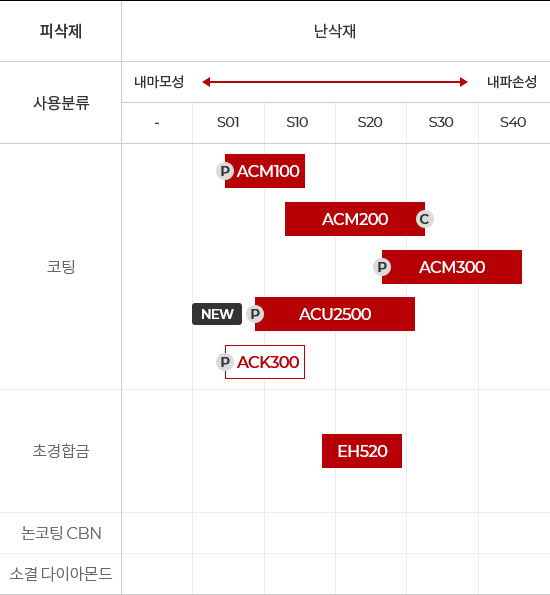 • 내마모성, 내열성이 우수한 PVD 신 코팅 재종