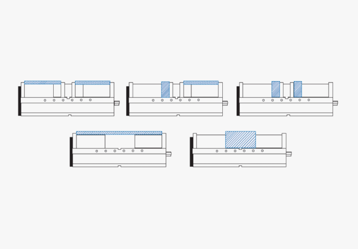 • 죠 배치에 따라 최대 5가지 형체로 가공물 클램프 가능