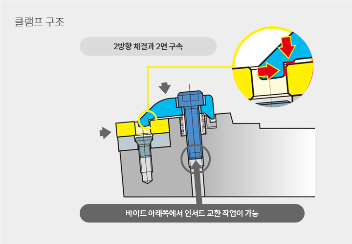 - 바이트 아래쪽에서 인서트 교환 작업이 가능
