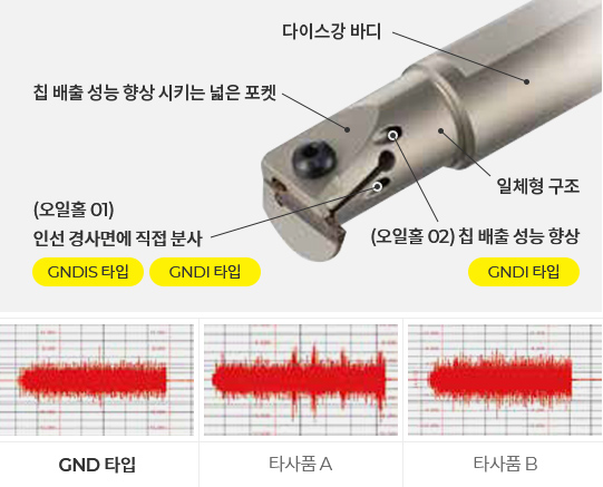 다양한 칩브레이커로 여러가지 상황에서 칩 처리 개선