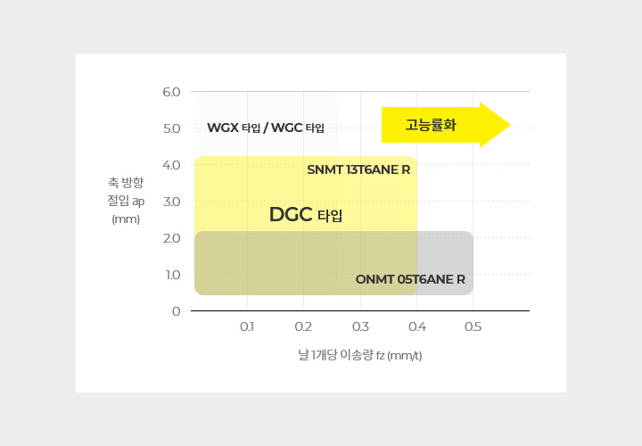 단면 사양과 동등한 절삭 성능과 우수한 경제성 ap = 3mm