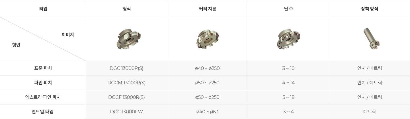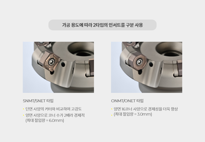 가공 용도에 따라 바디 단독으로 2타입 인서트를