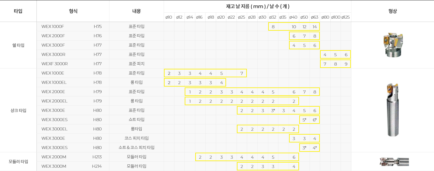 ※ * 기호가 붙은 제품은 샹크 지름이 다른 재고가 있음.