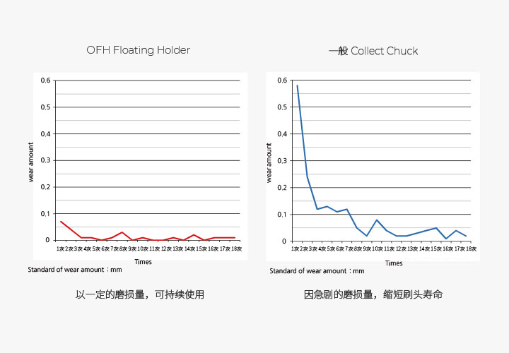延长毛刷的寿命(与筒夹刀柄相比提高50%)