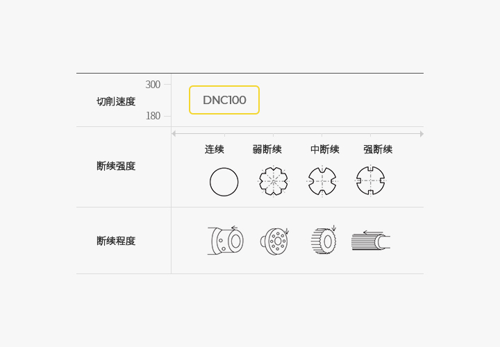 涂层刀片-DNC100具有高耐热性可以有效抵抗高速加工时产生的 高温。