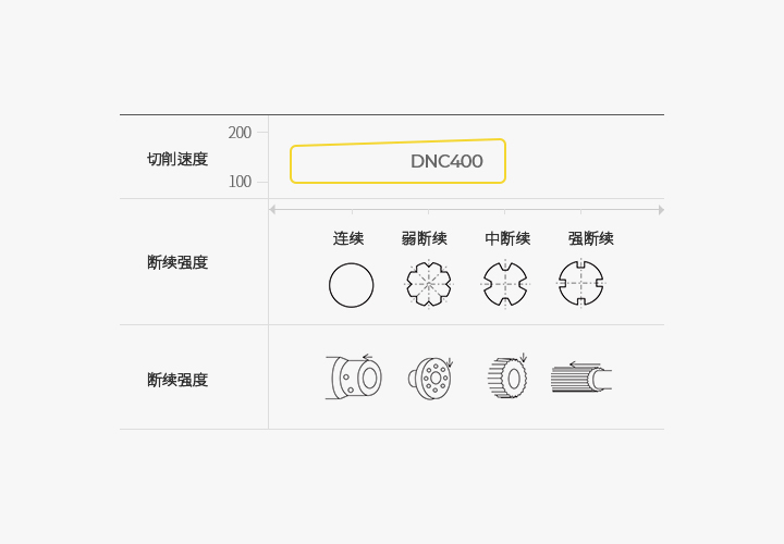 - 适合于热处理钢连续·中断续加工的产品