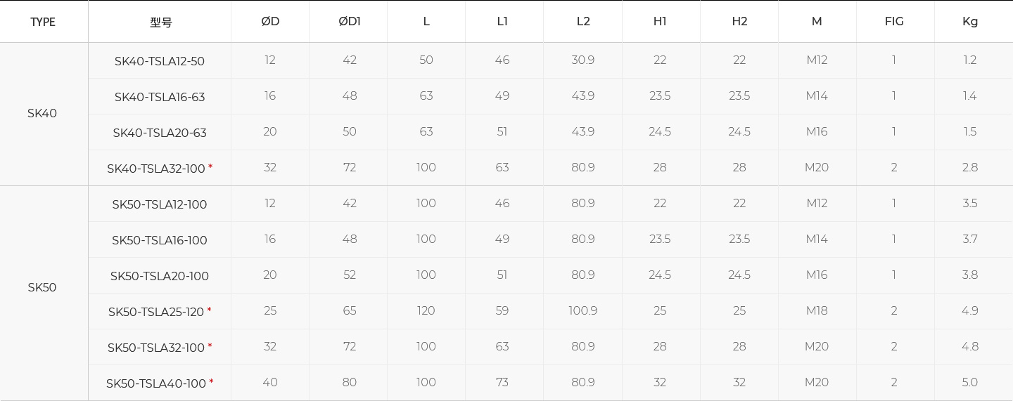 ALL 所有产品 Chuck/Arbor VISE Other Products TSLA_侧固刀柄 ER Collet Chuck List 3D图纸产品目录 刀柄 Mas 403-BT 刀柄 内冷系统 (mm) SK-TSLA Side Lock Arbor -SK shank 刀柄 DIN69871 刀柄 G6.3 G 值 12,000 最大转速 内冷系统 (mm) * 内径25/32/40的规格型号需要配装2个锁紧螺钉。