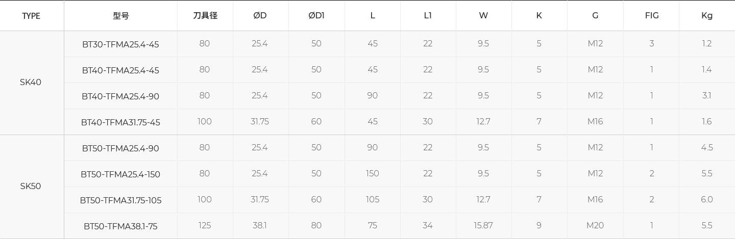 ALL 所有产品 Chuck/Arbor VISE Other Products TFMA_面铣刀柄 Face Milling Arbor List 3D图纸产品目录 刀柄 Mas 403-BT 刀柄 C 内冷系统 (mm)