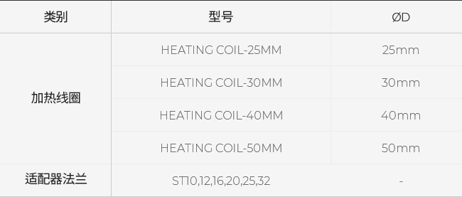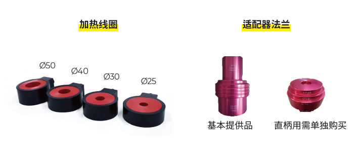• Ø25, Ø30, Ø40, Ø50的直径的加热线圈可以更换