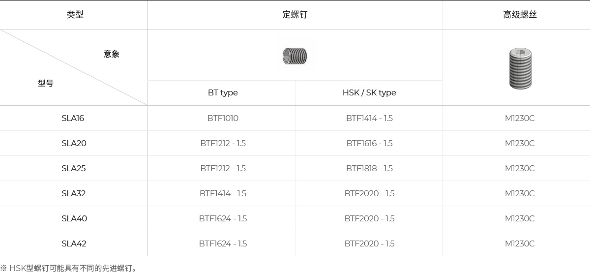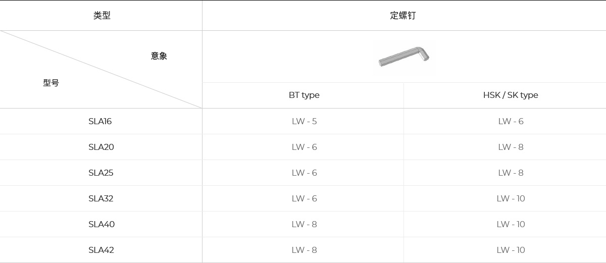 ALL 所有产品 CHUCK ARBOR BORING ANGULAR HEAD CBN/PCD ACCESSORY SLA_侧固刀柄 Side lock arbor List 3D图纸图纸产品目录 BT 刀柄 C内部冷却系统 HSK 刀柄 C内冷系统可选 HSK 刀柄单独购买品 冷却管 按柄部结构区分 HSK50 HSK50A-CNS HSK63 HSK63A-CNS HSK100 HSK100A-CNS SK 刀柄 C内部冷却系统 SLA 配件 主要构成 单独购买品