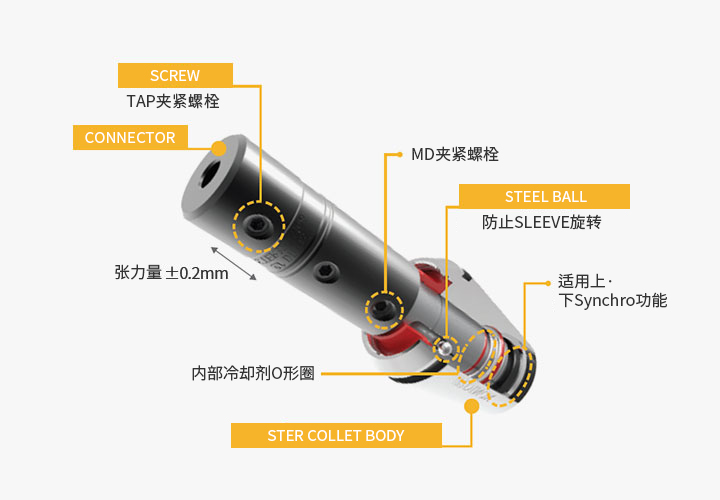 DINE精工的螺丝攻筒夹-STER可最小化高速攻丝加工时同步误差范围
