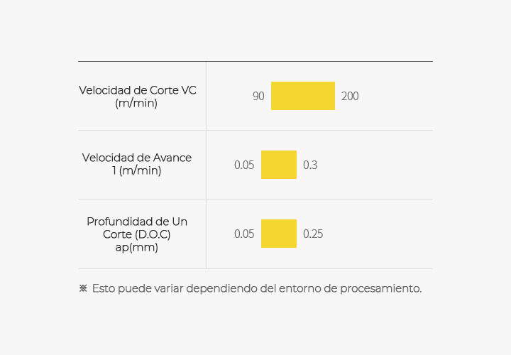 Este producto se recomienda para el procesamiento de acero tratado térmicamente y está optimizado para el corte débil y de velocidad media.