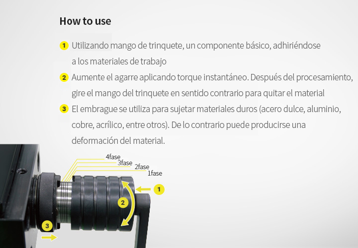 - Entrada (18T) / Salida (23T) Mordaza suplementaria proporcionada.