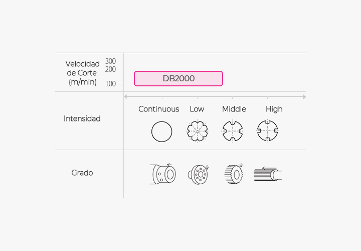 DB2000 es una especie descubierta general-soluble que corresponde al procesamiento de aceros tratados térmicamente a través de cBN no recubiertos.
