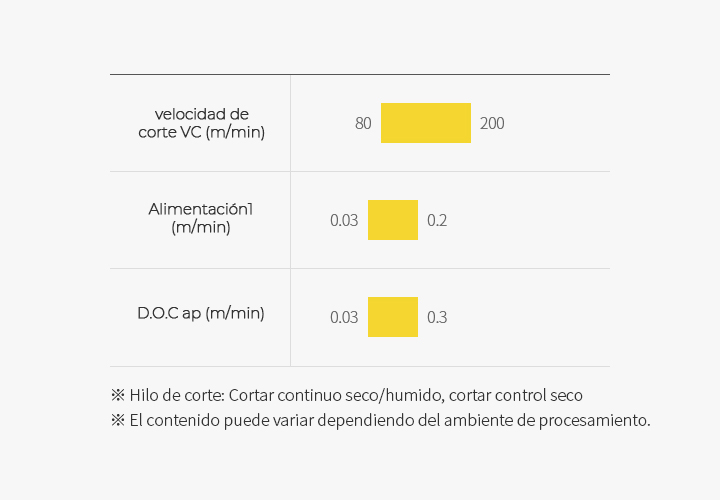 Este producto se recomienda para el procesamiento de acero tratado térmicamente y está optimizado para el corte de velocidad débil y media.