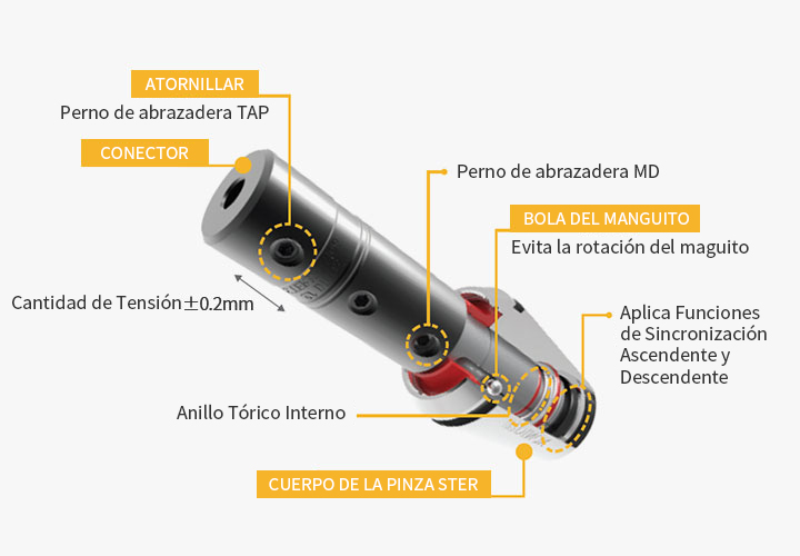 - Mandril de pinza regular para minimizar el rango de error sincrónico al procesar el roscado de alta velocidad