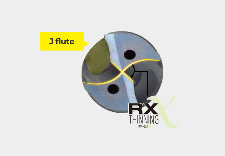 깊은 홀 가공 시 안정된 칩 처리성을 향상시킨 새로운 홈 형상 ( J 플루트 ) 적용