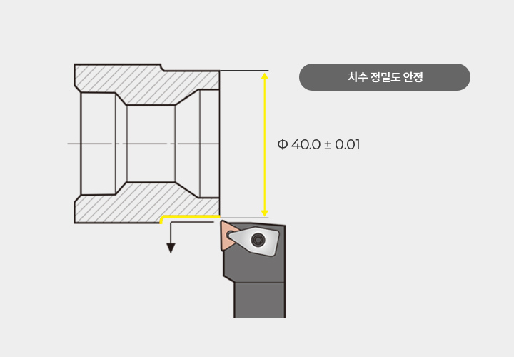 - 바이트 아래쪽에서 인서트 교환 작업이 가능