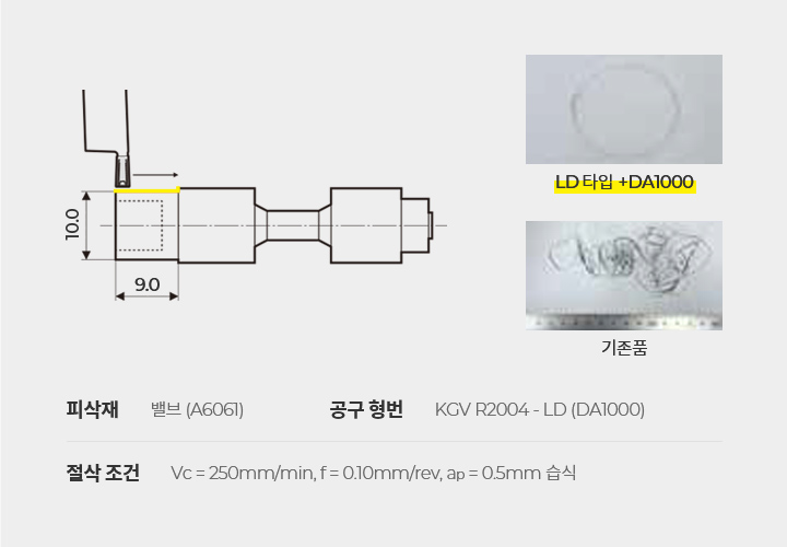 - 알루미늄 합금의 수평 이송·홈 가공에서 탁월한 칩 처리 실현